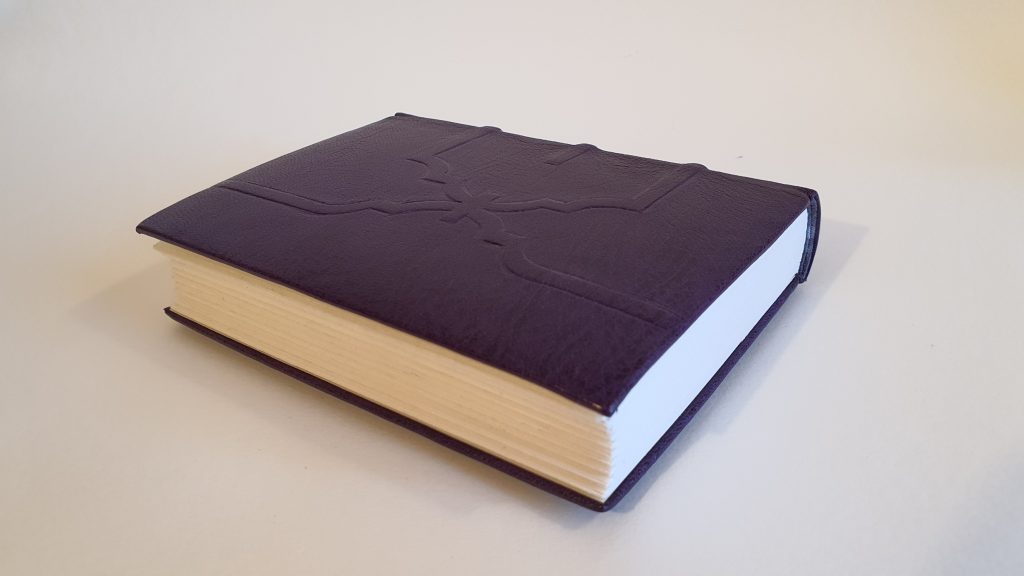 Size: 15×11 cm / 6x4.3 inches. Bound in Goatskin Leather. Handsewn silk headbands. Edge Decoration on all 3 sides. 158 pages of 150gsm sketchpad paper